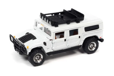 Check out this high-performance suv from Johnny Lightning! This 2006 Hummer H1 Alpha with Roof Rack is a 1/64 scale model replica. It comes in white and features real rubber tires, metal body and chassis, detailed exterior, comes in a blister pack. It’s an excellent addition for any suv collection, and wonderful for ardent Hummer admirers!